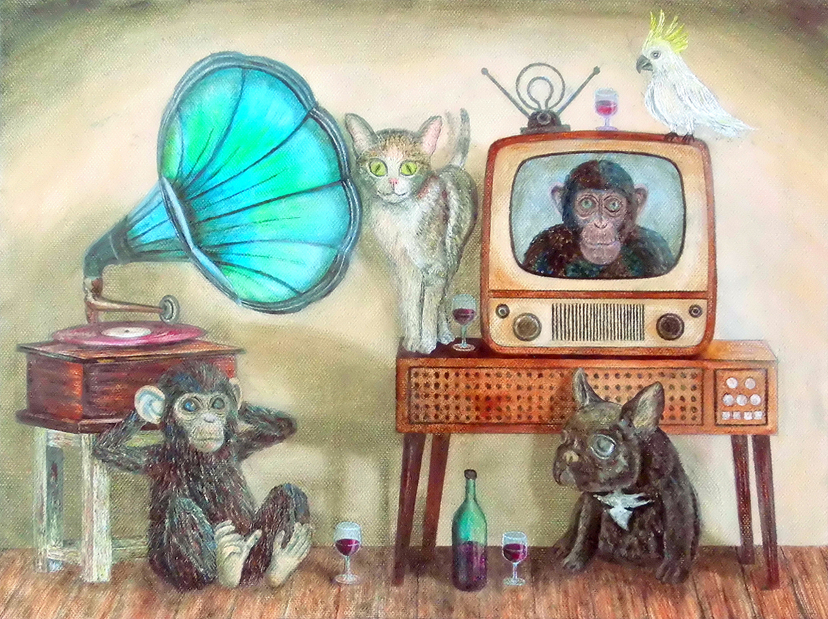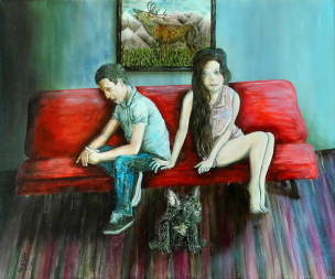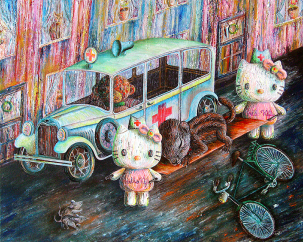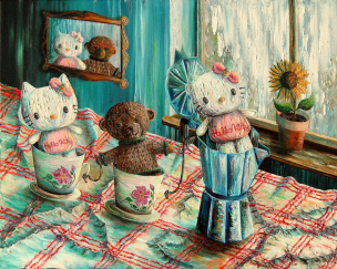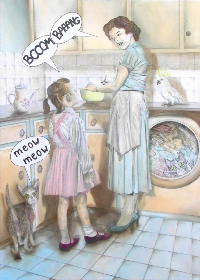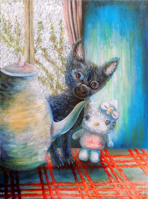 Du gibst mir sofort meine Kitty zurück! Öl auf Leinwand